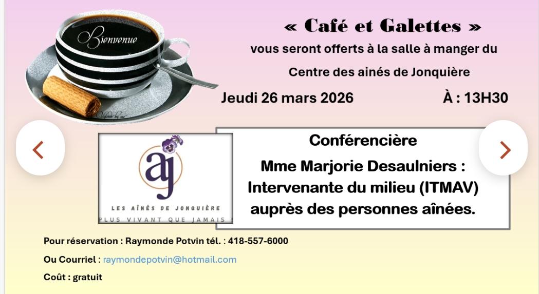 CAFÉ-RENCONTRE – À LA SALLE À MANGER DES AÎNÉS DE JONQUIÈRE